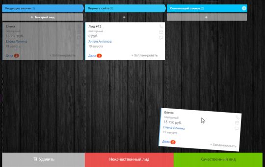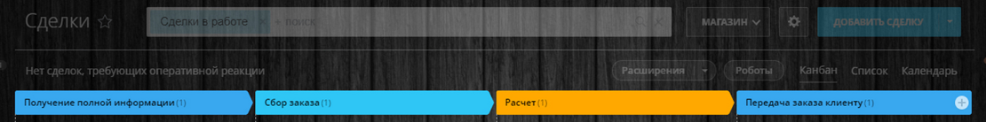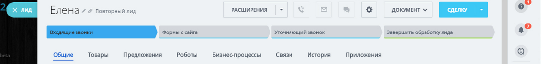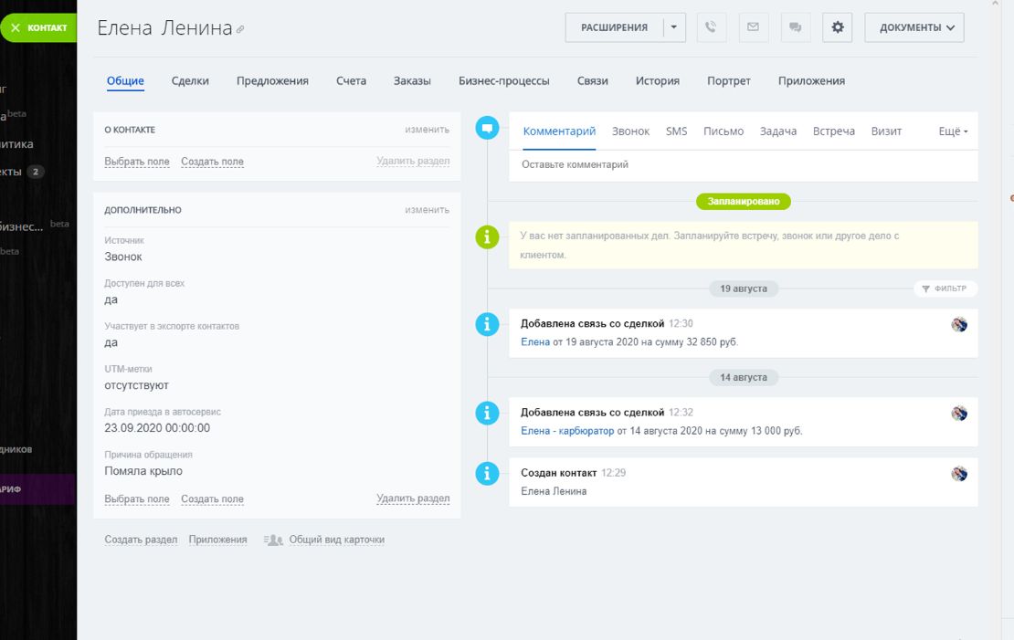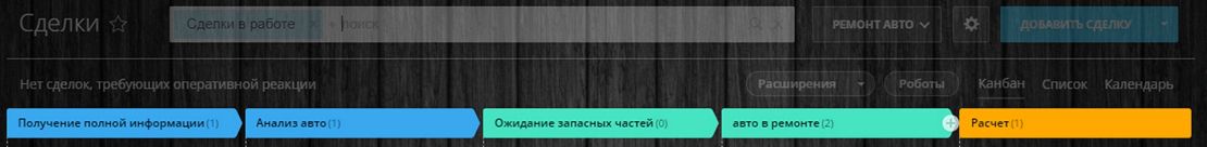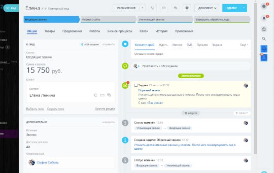 Все ранее внесенные данные о вашем клиенте и его обращении переносятся из лида в сделку. Также появляются дополнительные поля, относящиеся к данному направлению, такие как «Дата начала работ», «Дата окончания работ» и пр.